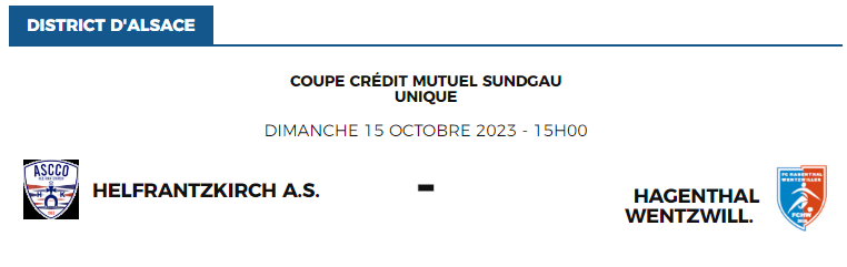 Coupe du Crédit Mutuel – 2ème tour ; dimanche 15 octobre 2023 !