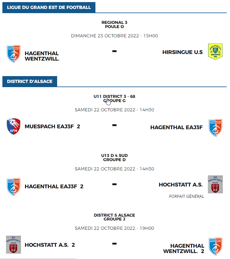 Les rencontres du week-end ; 22 & 23 octobre 2022 !