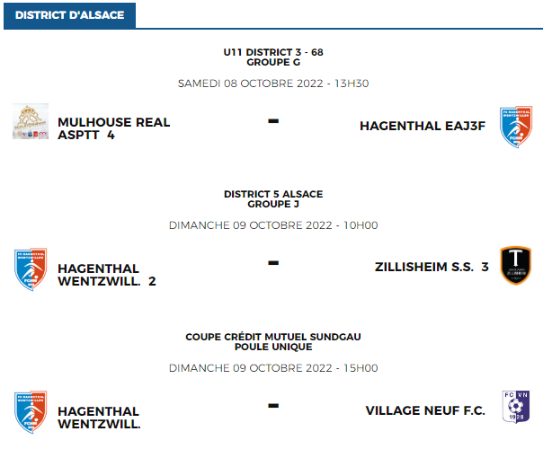 Les rencontres du week-end à venir – 08 & 09 octobre 2022 !