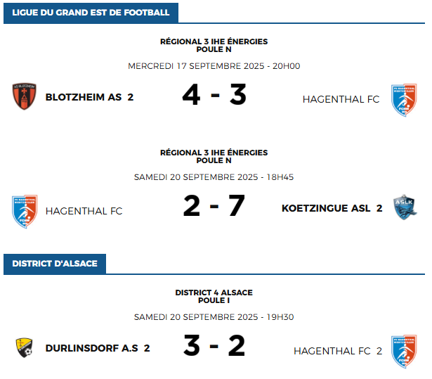 • Le résultat du week-end ; samedi 27 septembre 2025