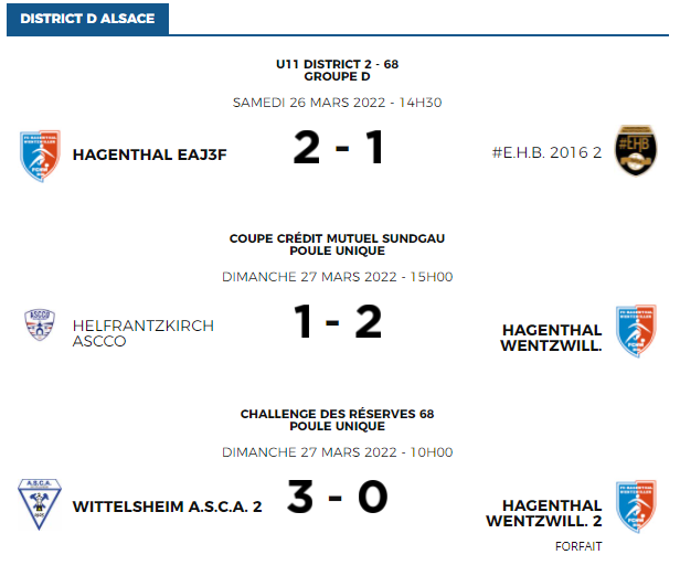 Les résultats du week-end, 26 & 27 mars 2022 !